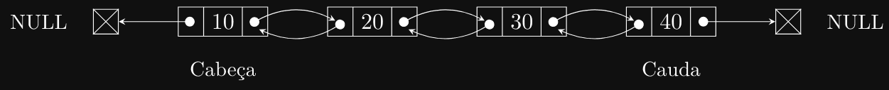 Agora, vamos ver o mesmo exemplo utilizando uma lista duplamente encadeada: