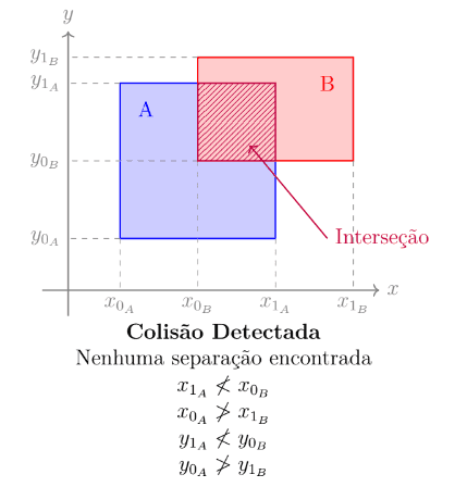 Para resolver esse problema de forma eficiente, em vez de tentarmos calcular a área exata da inter- seção, utilizamos uma técnica chamada AABB (Axis-Aligned Bounding Box).